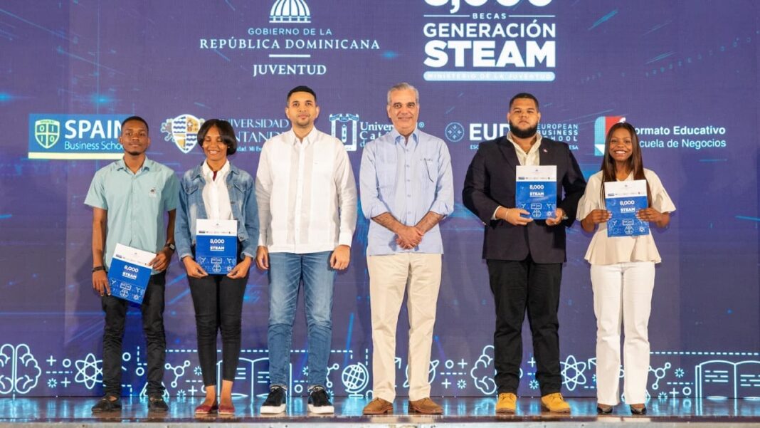 “Hoy entregamos estas becas del programa Generación STEAM, una iniciativa que busca fortalecer la formación de jóvenes dominicanos en áreas estratégicas para el futuro del país”, expresó.