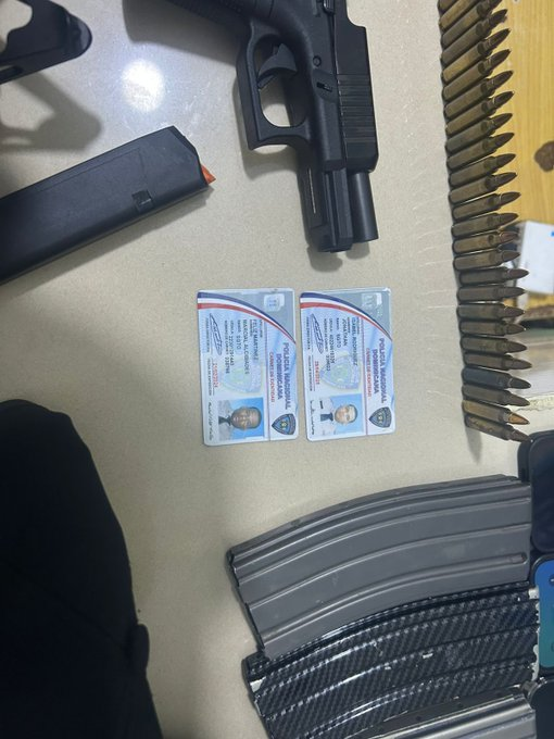 Minutos más tarde, los implicados fueron localizados y detenidos a bordo de un vehículo, en el cual se les ocupó armas de fuego, chalecos antibalas, pasamontañas y otros objetos utilizados para simular una intervención policial.