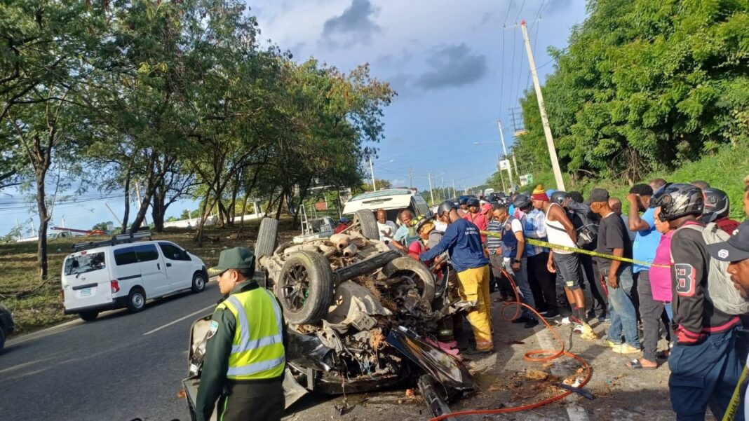 La víctima fue identificada como Learitza Almánzar Tavárez, quien falleció a causa de los fuertes golpes sufridos cuando el vehículo en que viajaba perdió el control y se estrelló contra dos palmas.