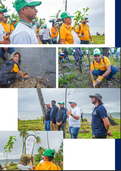 En apoyo a la recuperación de la capa boscosa, se han desarrollado jornadas de reforestación en provincias como San Juan, Hermanas Mirabal y Hato Mayor, con la siembra de unas nueve mil plántulas, involucrando a 300 empleados, participantes y comunitarios.