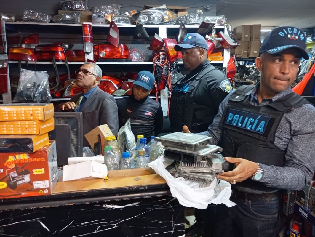La Policía Nacional, a través de la Subdirección Regional de Investigación Sur (Barahona), junto al Ministerio Público, desmanteló una estructura dedicada al robo y comercialización ilícita de computadoras, radios y otras piezas electrónicas para vehículos, logrando la incautación de 130 evidencias y la detención de tres presuntos integrantes, durante un allanamiento realizado en un repuesto del sector Villa Agrícola, Distrito Nacional.